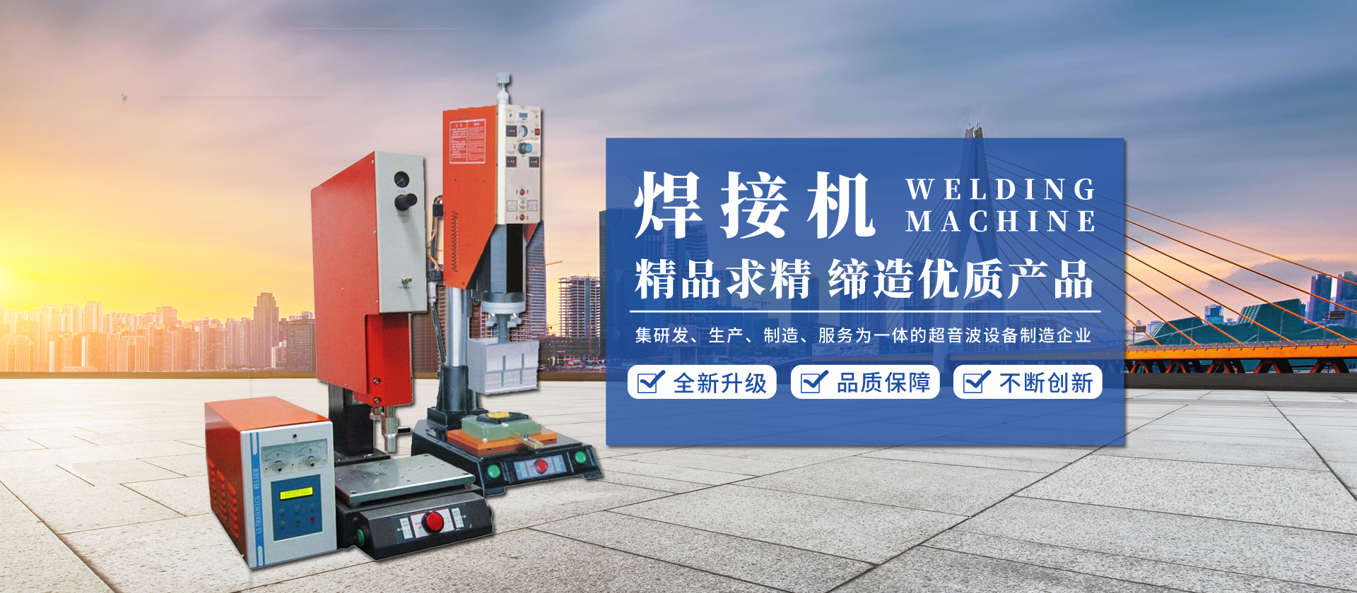 其中產(chǎn)品包括超聲波塑料熔接機(jī),超聲波清洗機(jī),超聲波花邊機(jī),超聲波手術(shù)衣專(zhuān)用機(jī),超聲波手焊機(jī),熱板機(jī),熱熔機(jī),旋熔機(jī),震動(dòng)摩擦焊接機(jī),超聲波金屬點(diǎn)焊機(jī),高頻機(jī),高頻誘導(dǎo)焊接機(jī),內(nèi)植阻抗焊接機(jī),紅外線焊接機(jī),激光焊接機(jī),微波焊接機(jī)等等塑料焊接設(shè)備的生產(chǎn)開(kāi)發(fā)、銷(xiāo)售及維修服務(wù),并為客戶(hù)設(shè)計(jì)自動(dòng)化清洗機(jī)線,設(shè)計(jì)制作超聲波、高周波模具,及超聲波產(chǎn)品焊接代工。